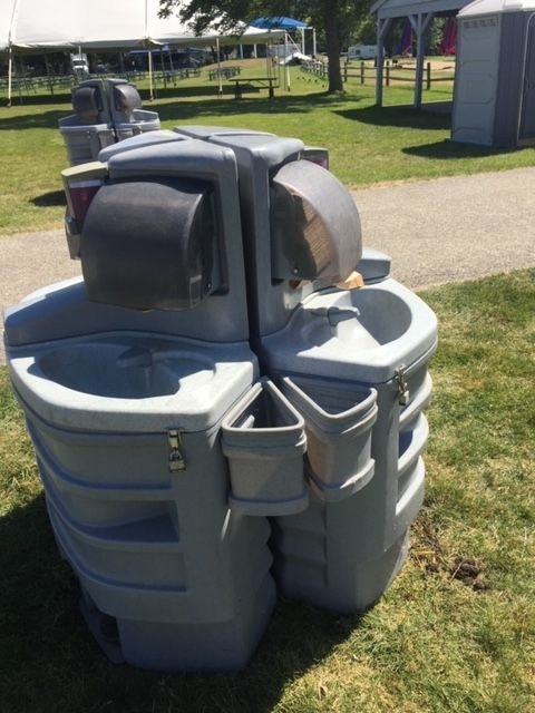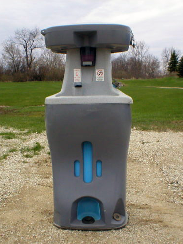- Standard, handicap, and ADA-compliant portable toilet units with waterless hand sanitizer